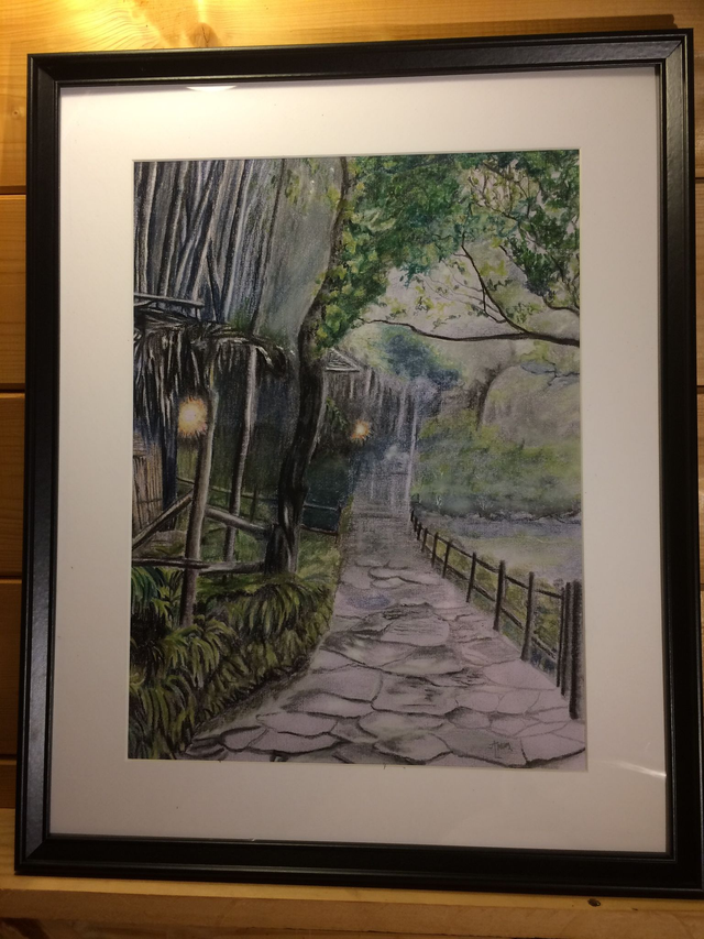 Dessin pastel format A3 - Sous cadre classique noir, Vendu encadré, face synthétique de qualité facile pour plus de sécurité (solide et moins lourd), dos avec des crochets métalliques pour accrochage vertical ou horizontal.
