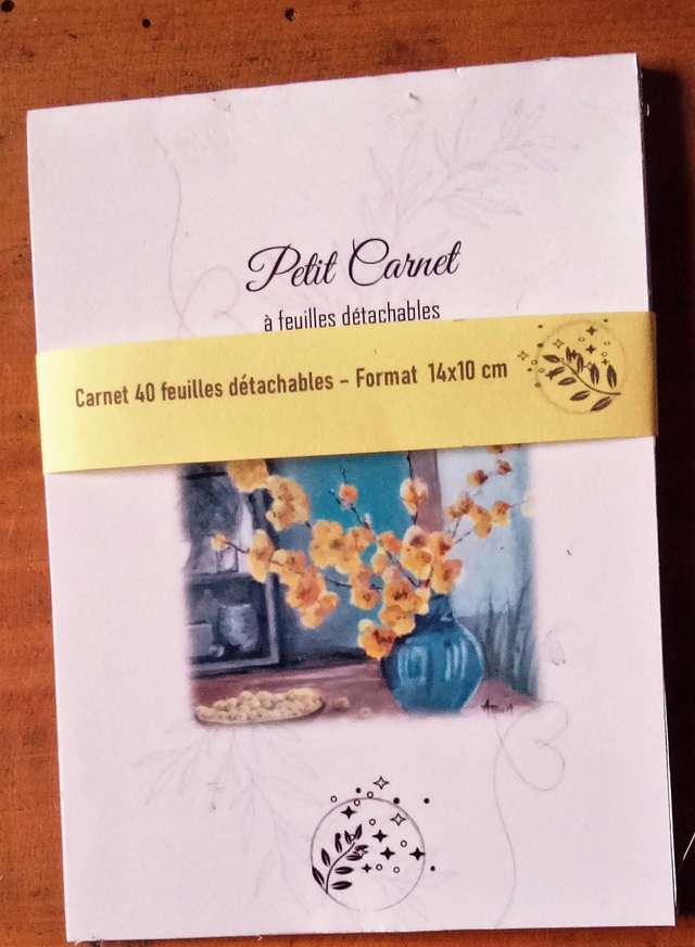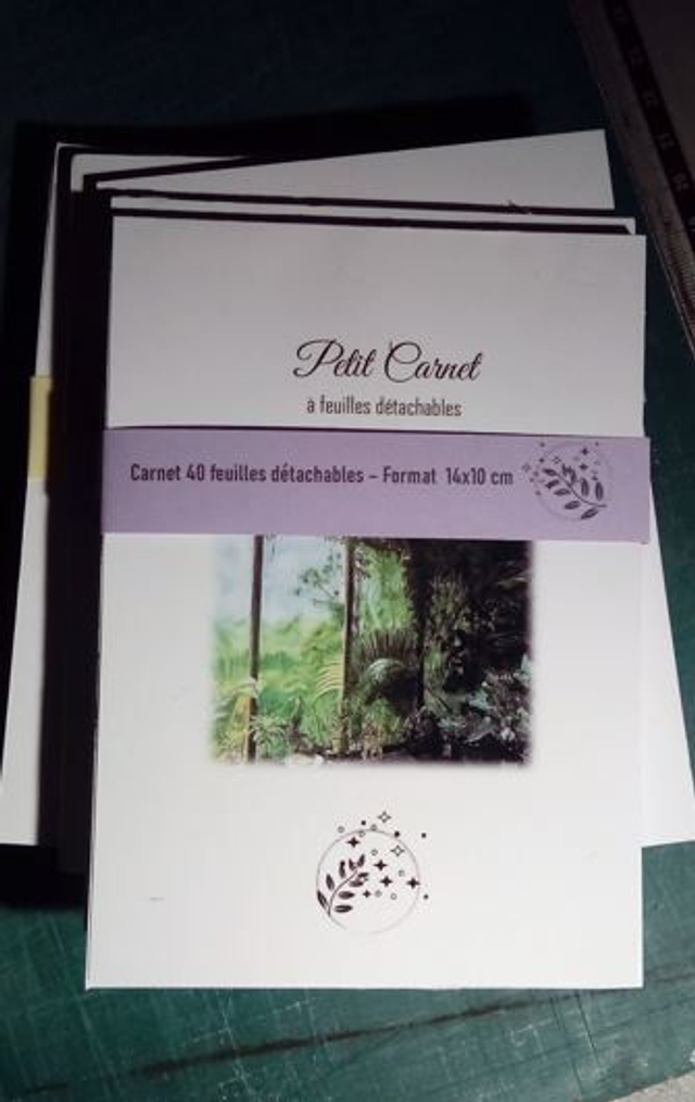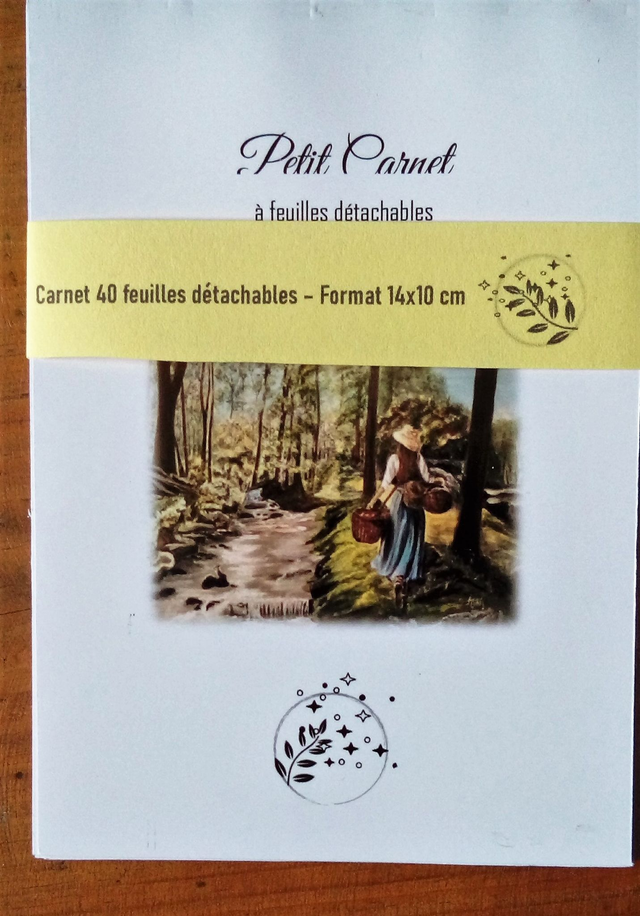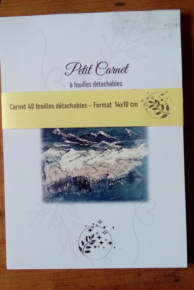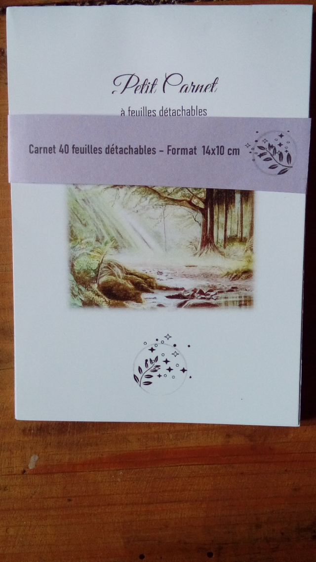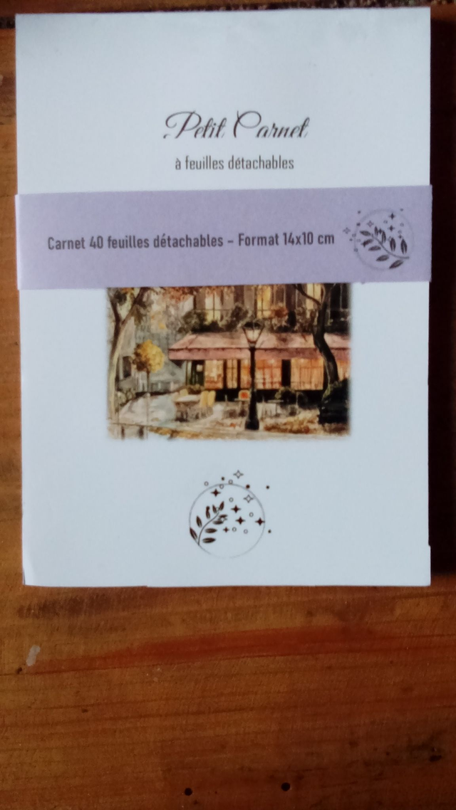 Carnet 40 feuilles blanches détachables; format 10 x 14 cm. Couverture illustrée (papier brillant).