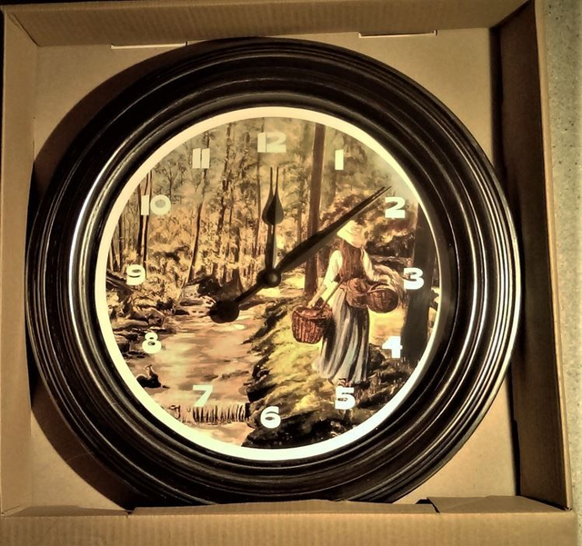 Horloge vintage en plastique. Mécanisme silencieux (pas de tic tac). Vitre en verre. Aiguilles aluminium.